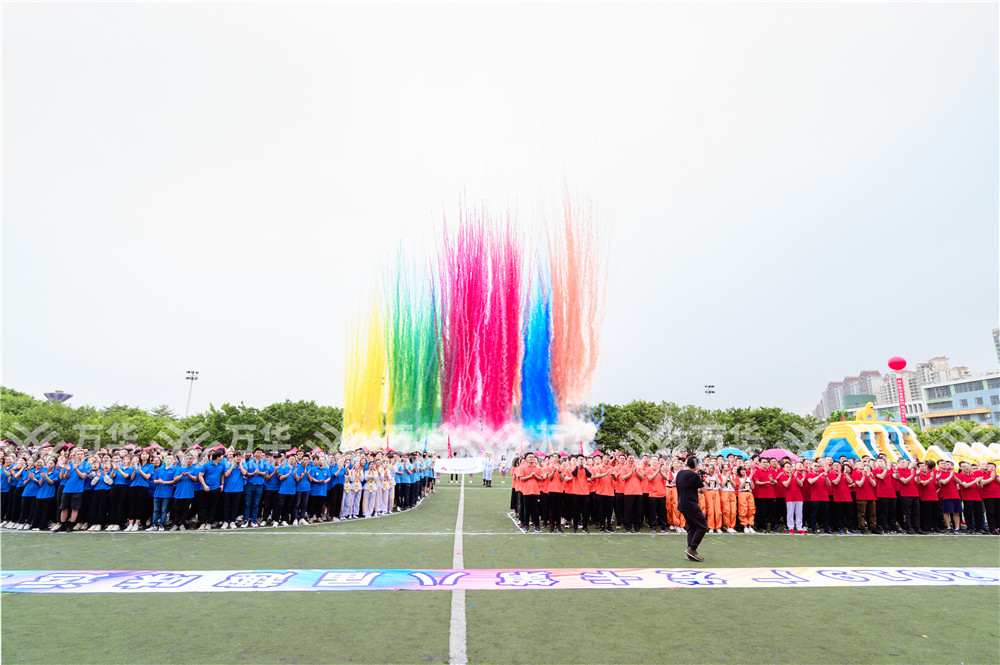 伴随着齐鸣的礼炮和迸发的彩烟,属于广发人的体育盛会正式拉开帷幕,来自广发卡中心的2000多名员工及家属齐聚华农田径场,